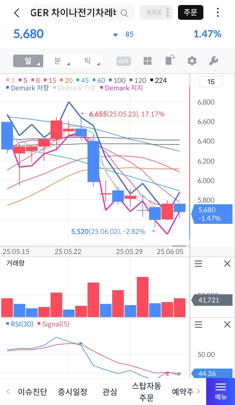 •차트상 최근 단기 폭락, 패닉셀 구간에서 RSI(30) 45.30으로 저점권 진입