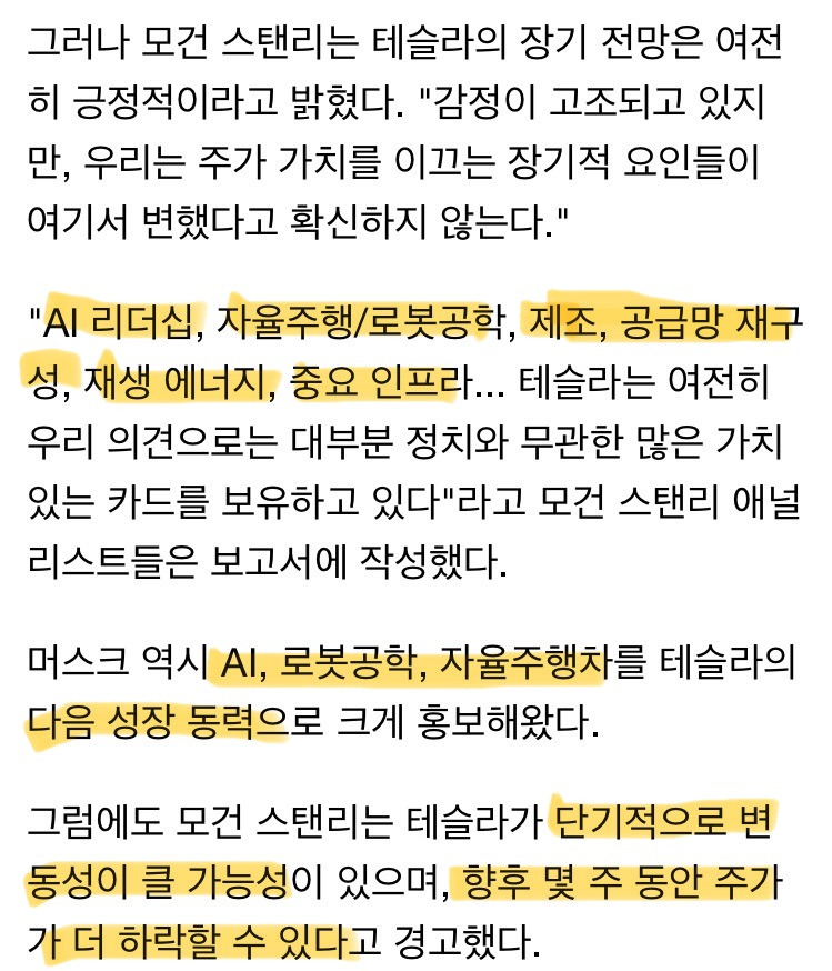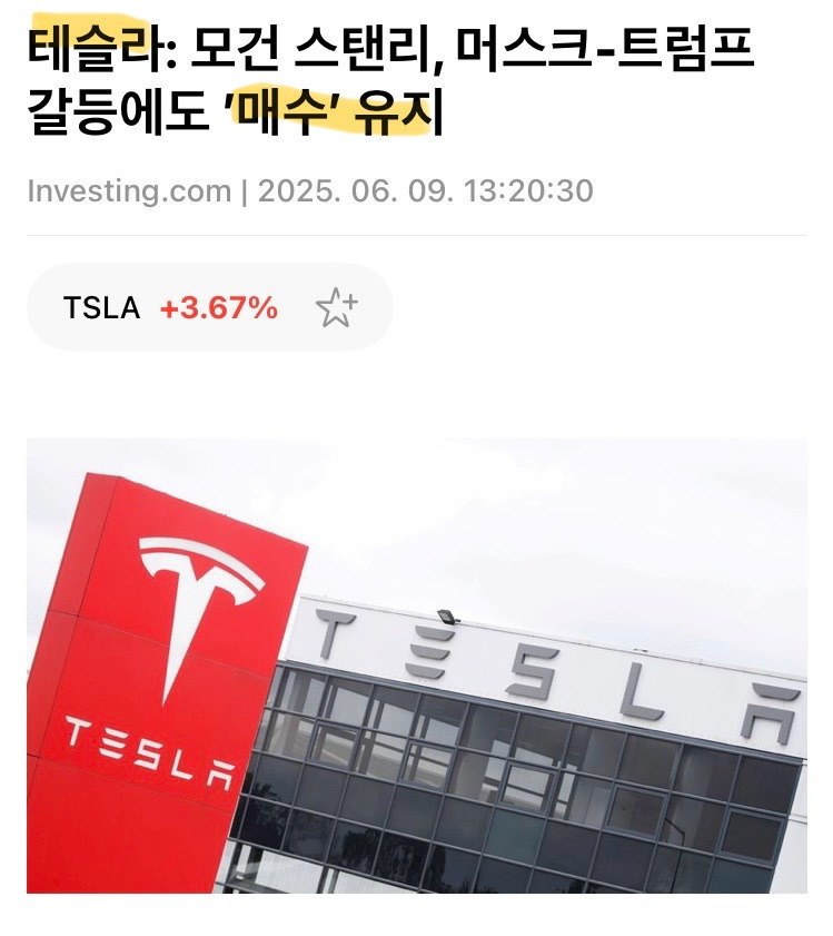 모건스탠리 “머스크-트럼프 갈등에도 매수 유지”, 장기 성장성(로봇공학·AI·자율주행·공급망·재생에너지) 카드 강조