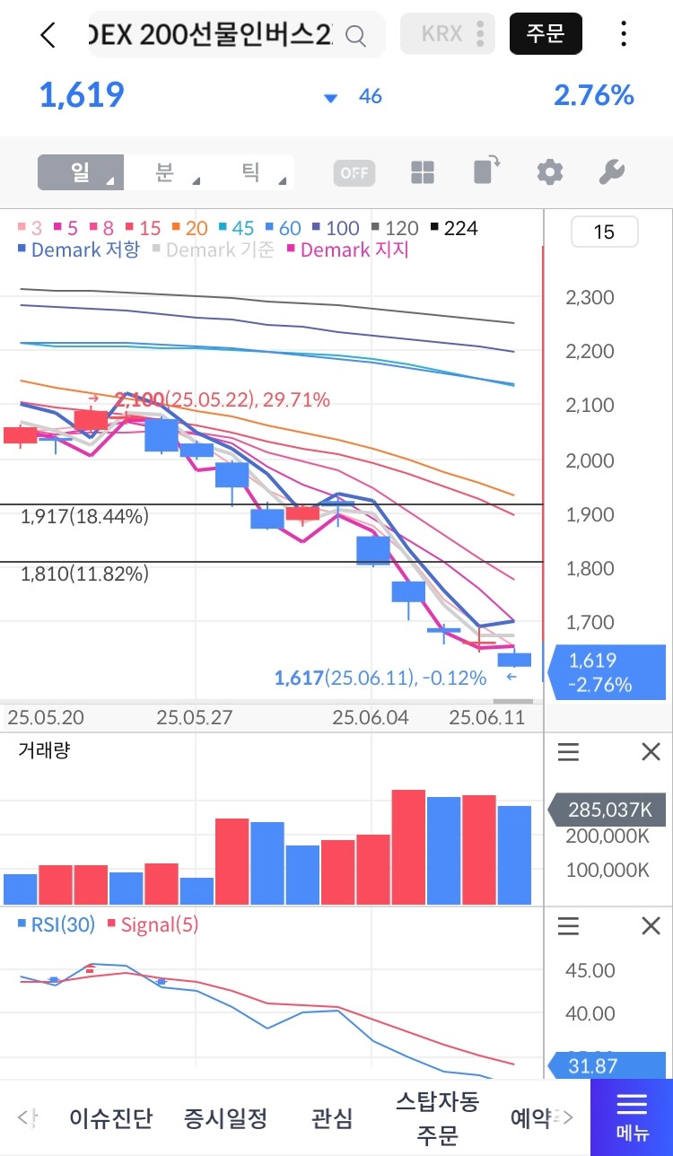 1,600~1,700선에서 극저점+횡보, RSI(30)=31.87(극단적 저점)