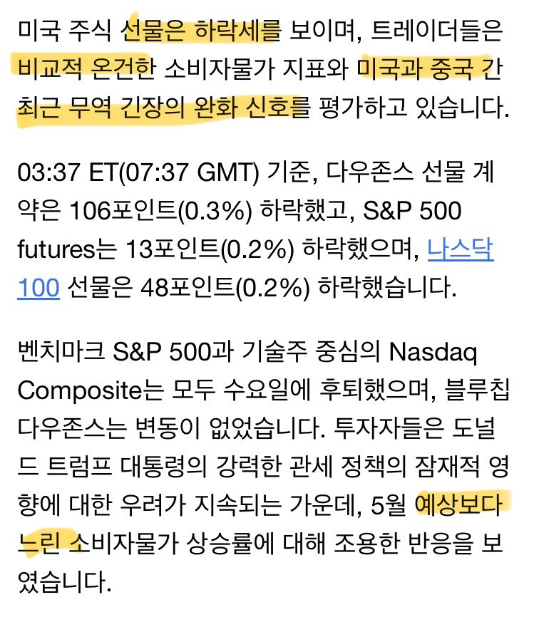 시장은 당분간 “온건한 긴장 완화+데이터(물가) 눈치보기”가 교차하는 혼조/조정 구간