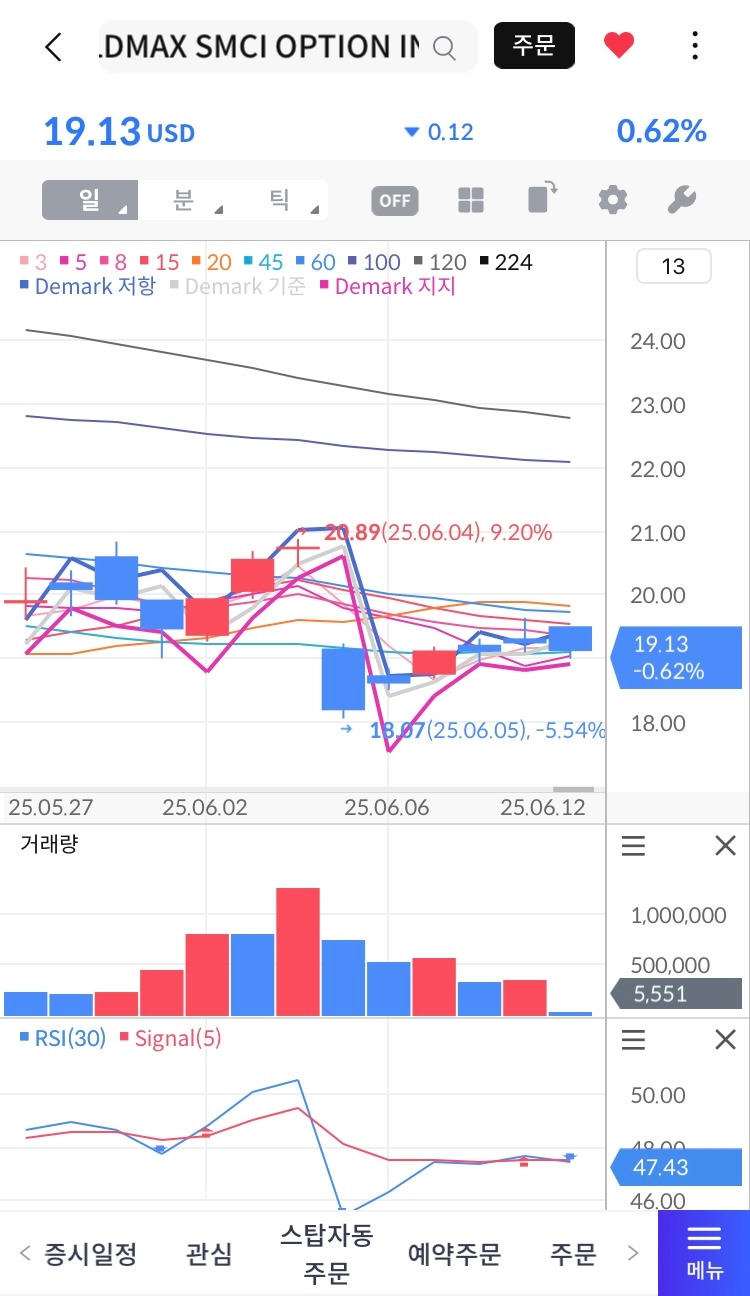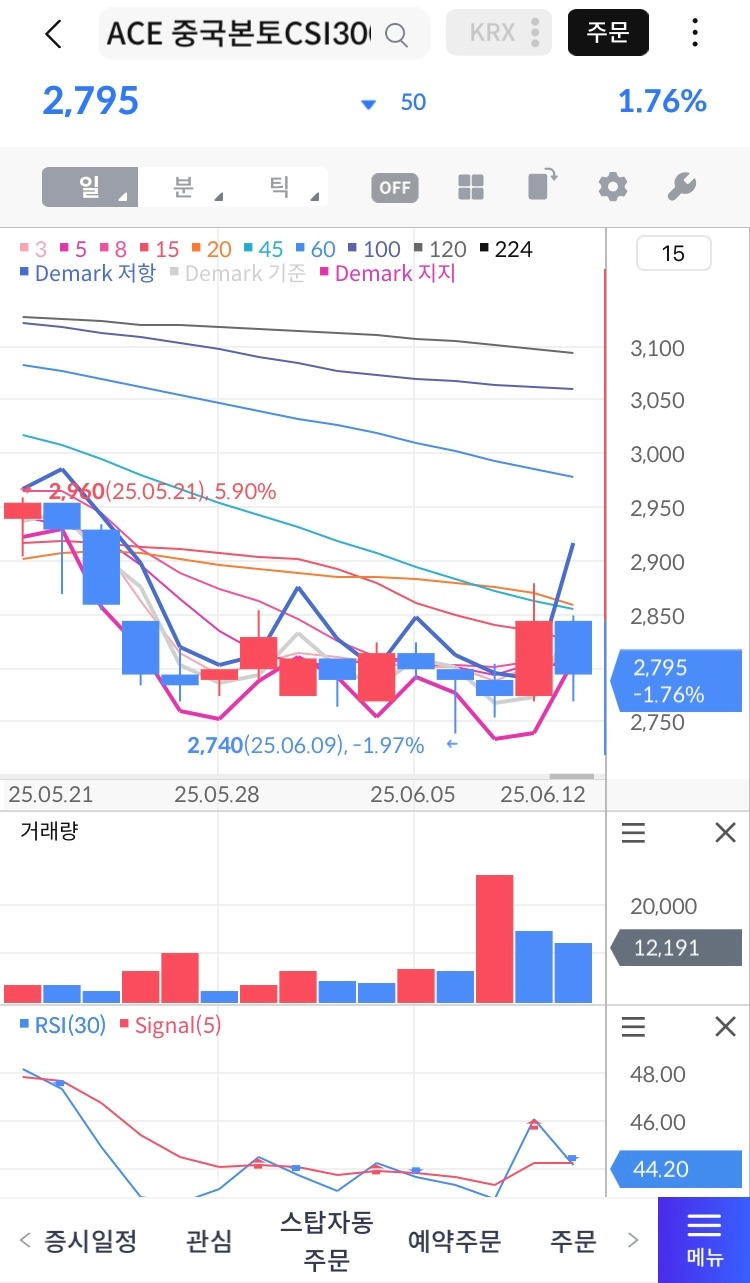 •RSI(30): 44.24 (Signal(5)=위), 조건 충족
