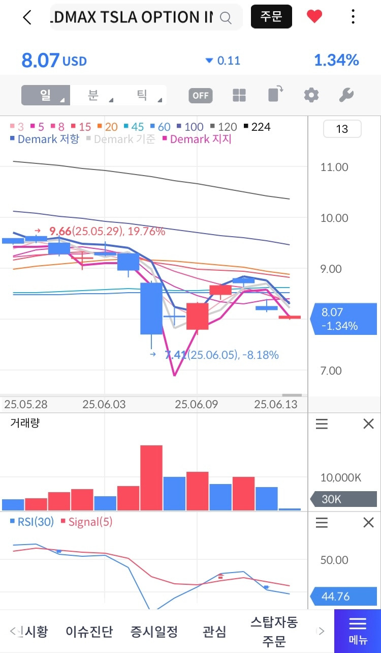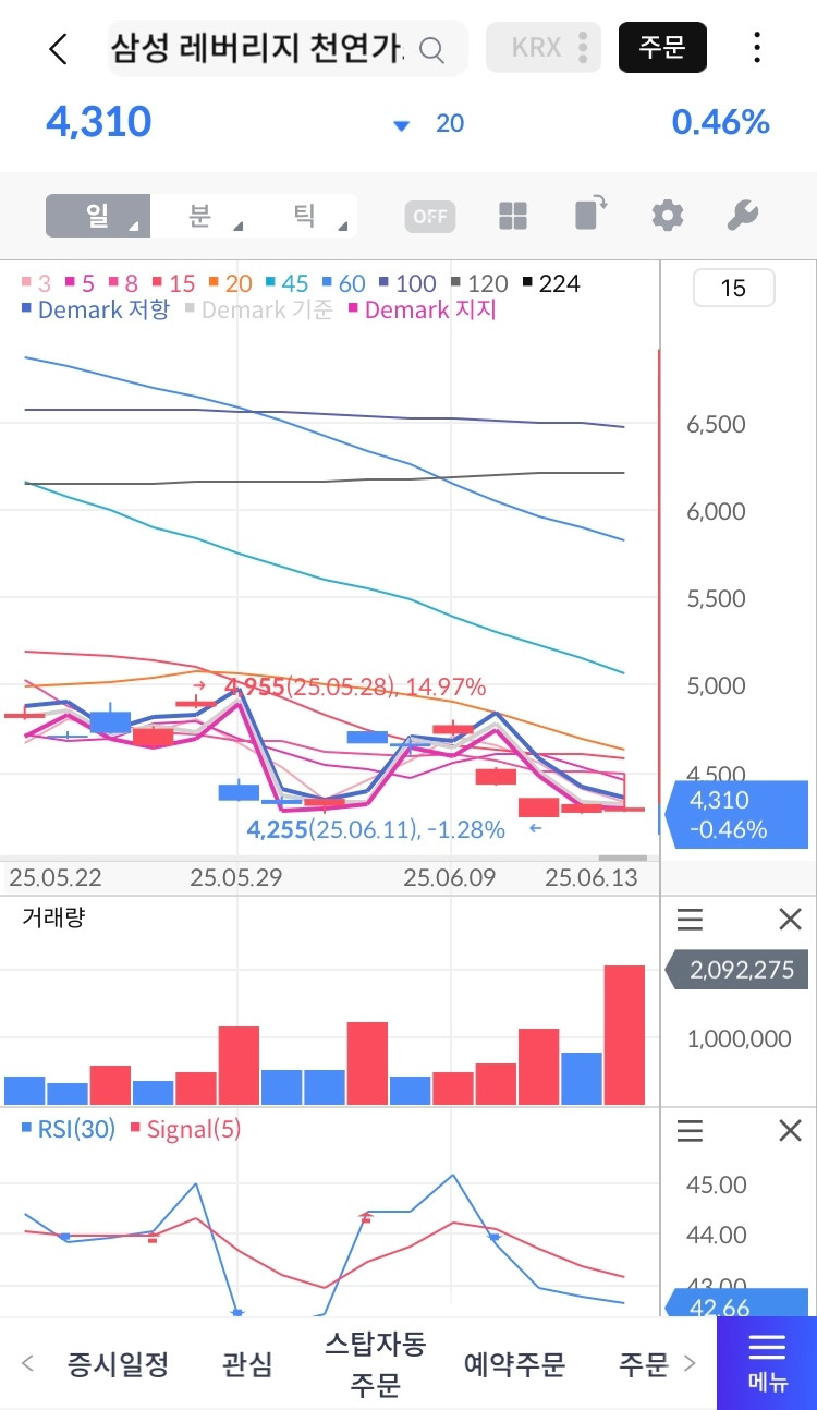 •차트: 명확한 바닥/RSI(30)=43.20, Signal(5) 하회.