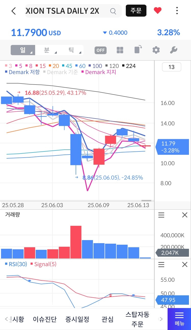 •재료: 중동 분쟁 이슈 및 트럼프-머스크 갈등 > 단기 급락 후 반발매수