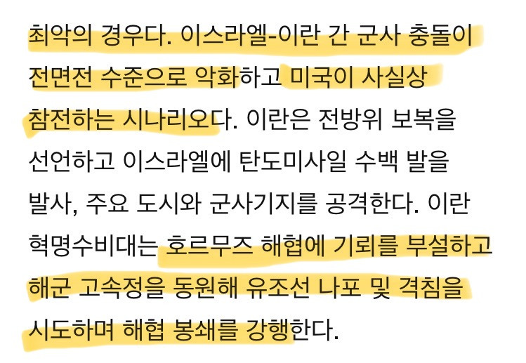 •단, 2번·3번 방향으로 “확전·예상 밖 리스크”가 도사리는 구조
