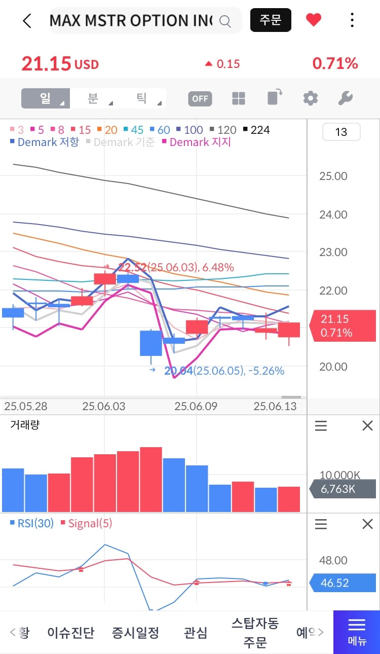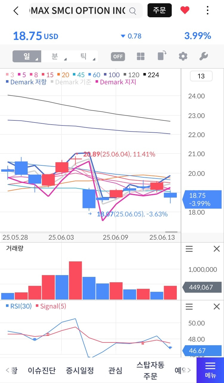 •RSI: 46.67(SMCI), 45.96(TSLY), 46.52(MSTY)—모두 임계치, 신호대기 구간