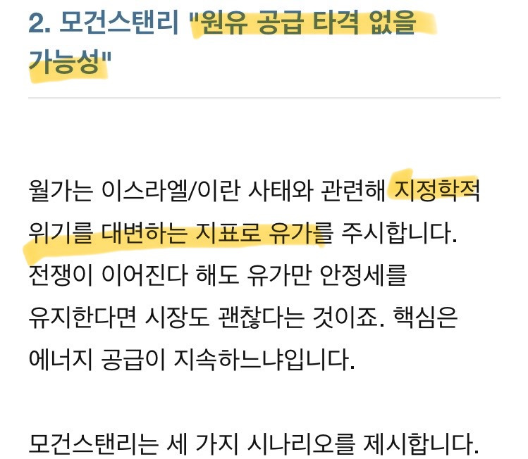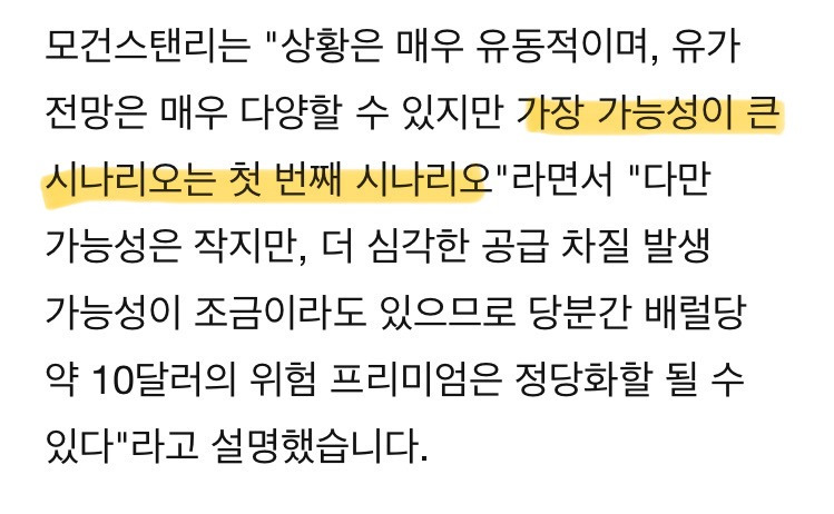 •그러나 모건스탠리 포함 다수 IB의 기본 시나리오는 “실질 공급 차질 가능성 낮음” 쪽(단기 리스크 프리미엄만 부여, 구조적 공급 감소 X)