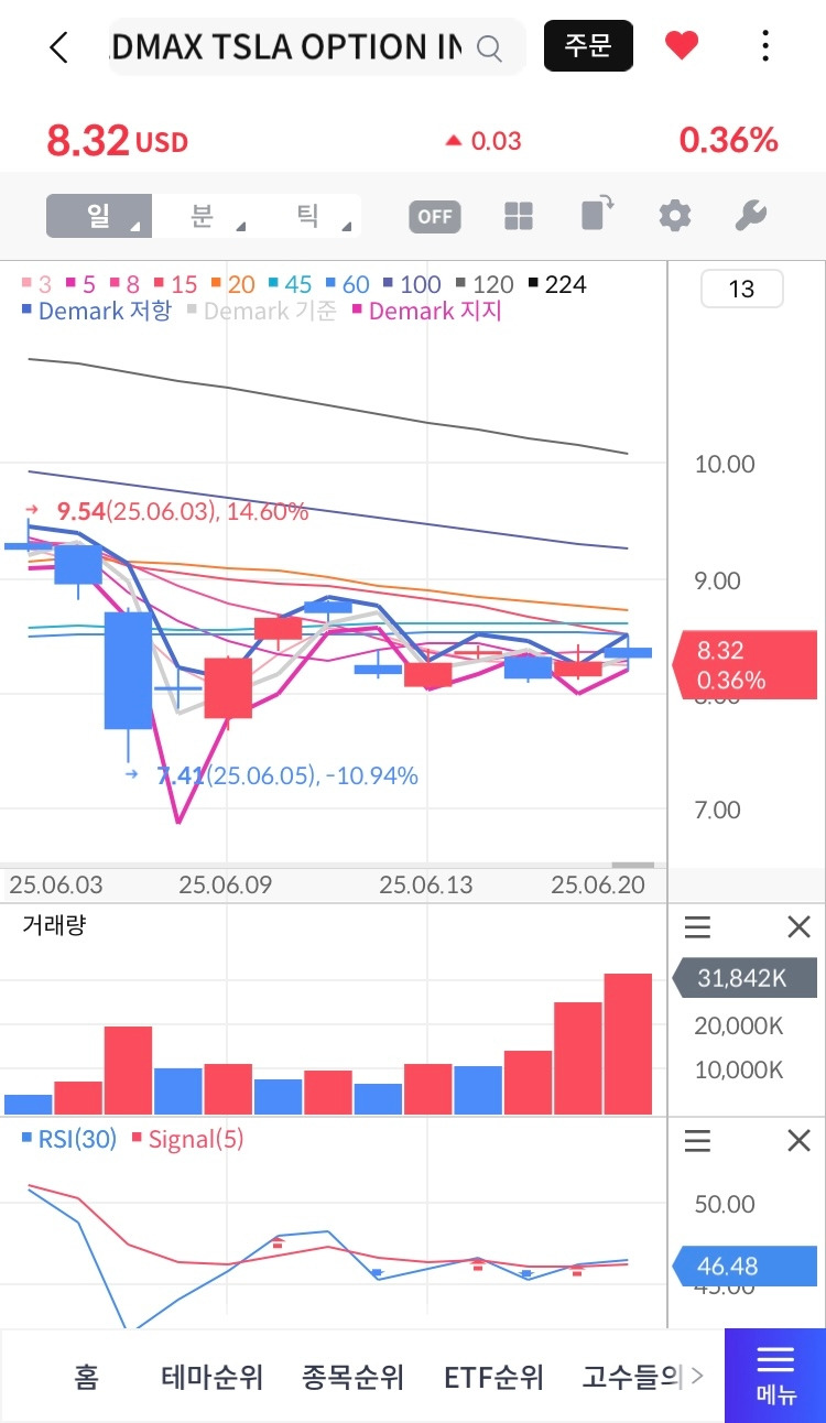 •차트: 6월 초 단기 급락 후 8달러대에서 횡보, 하락 에너지 소진, 거래량 최근 폭증