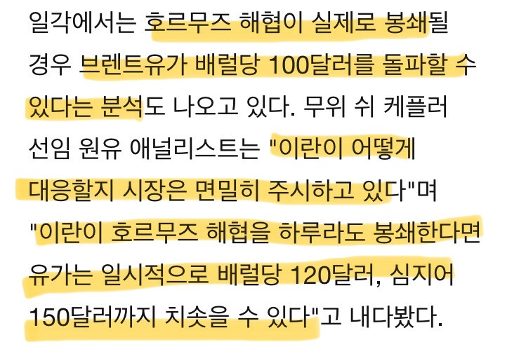 브렌트유 100달러 돌파, 심지어 120~150달러 쇼크(일시적 피크)