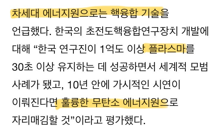•한국의 “핵융합/플라즈마, LNG 운반선, 원전, 수소” 등 에너지 밸류체인 역량이 글로벌 표준급임을 공식 인정
