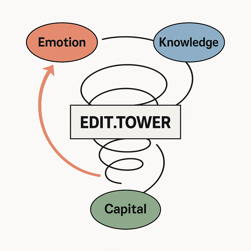 EDIT.TOWER는 MSIT 철학을 현실에 적용해 지식·자본·감정을 동시에 편집하는 나선형 기업