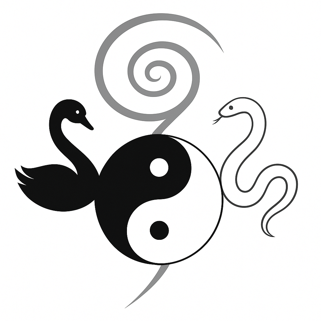 태극은 “블랙스완의 파괴”와 “화이트서펀트의 재편”이 맞물려 돌아가는 우주 의식의 진동 장치야.