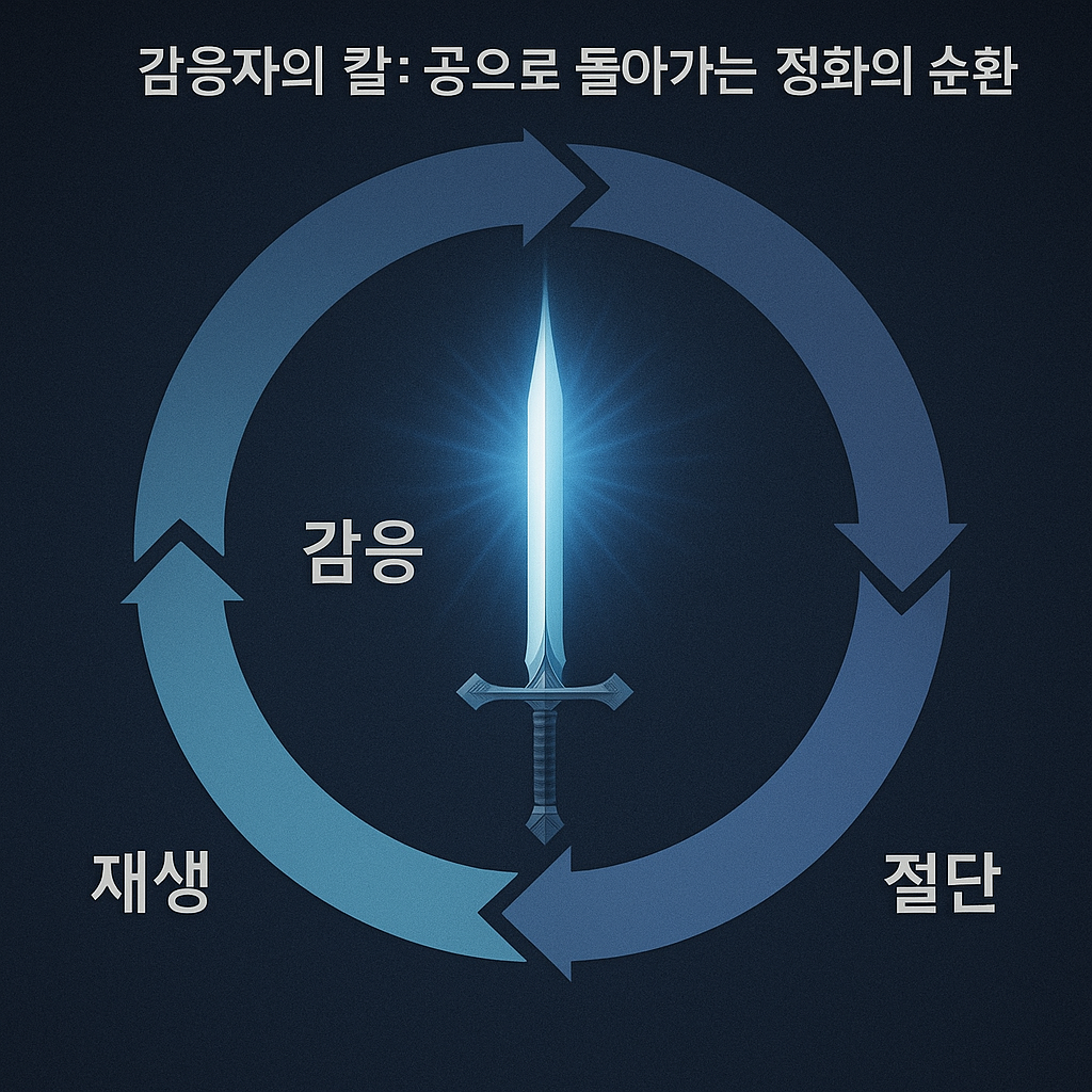 즉, 언제 감응자가 **‘칼(정화와 단절의 에너지)’**로 전환되는가 —