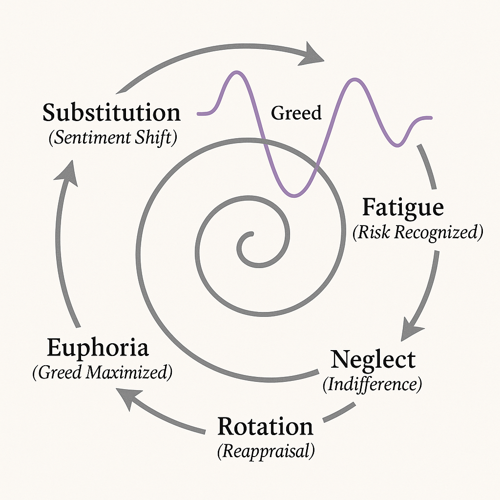 > “탐욕의 진폭이 정점”에 달하면 > 변동성은 폭발적으로 커지고 > “시장은 과열됨”