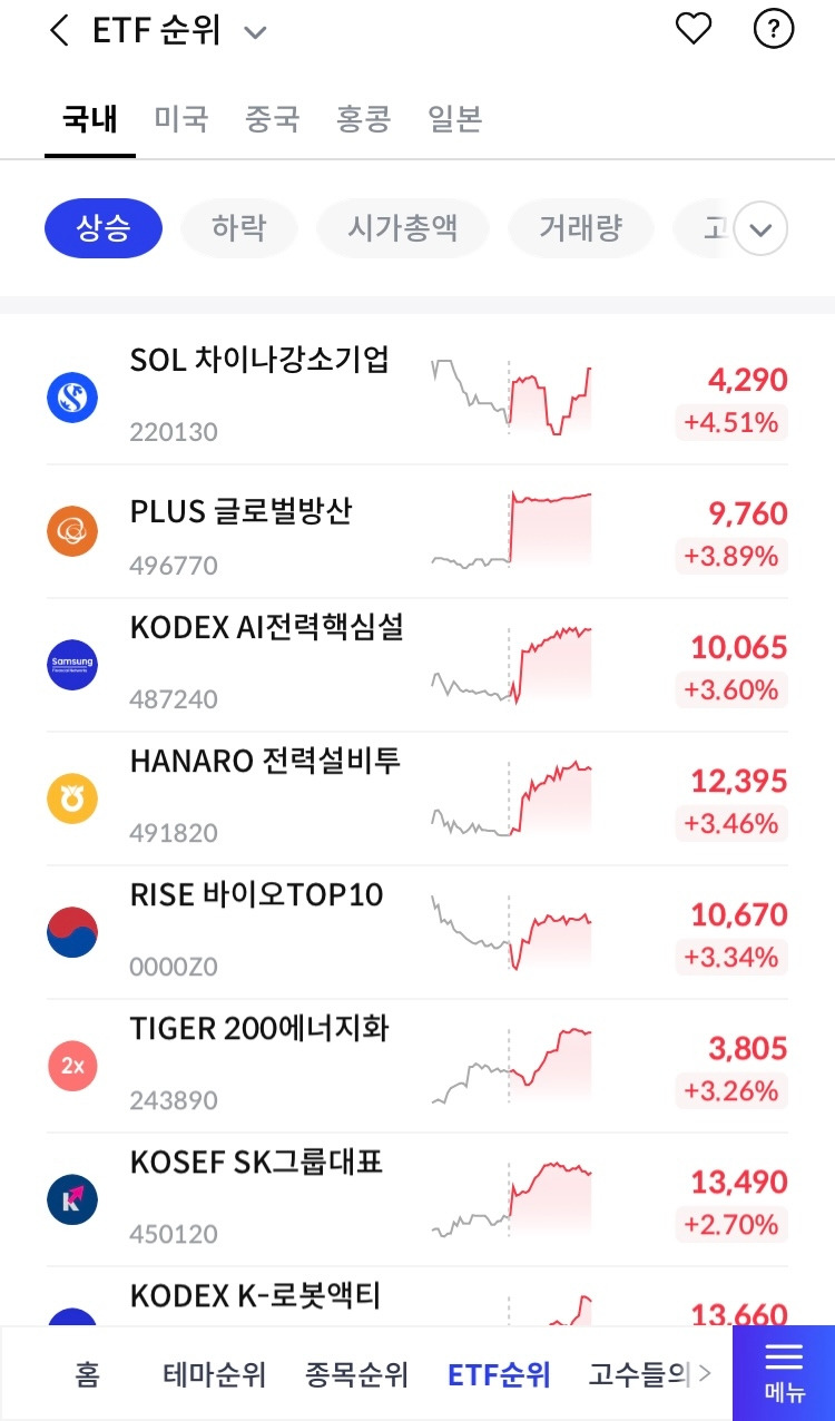 • ETF순위: 방위산업, AI, 친환경 에너지.