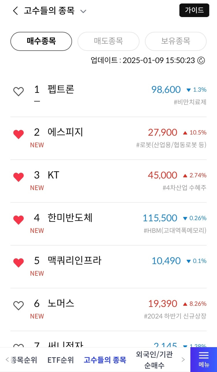 • 목적: 고수들이 매수한 종목과 테마 확인.