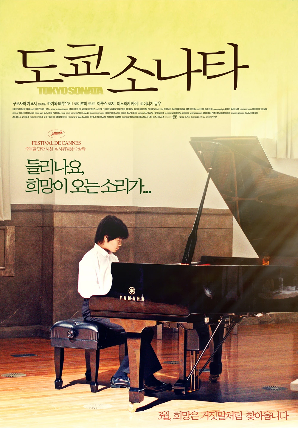 이 영화를 보면서 가장 인상적이었던 장면은 메구미를 인질로 삼아 바다에 데리고 간 도둑이 "난 왜 이렇게 사는 거지? 잘못에 잘못을 거듭하면서 나란 인간은 정말 구제불능이야"라고 스스로를 자학하는 장면이었다. 메구미는 자학하지 말라면서 "자기 자신은 하나뿐이에요. 믿을 건 자신밖에 없다고요"라는 말을 한다. 절망 속에서 자신을 지켜주고 건져줄 사람은 자신밖에 없다는 말로 들려 매우 공감이 갔다. "사람은 모두 자신의 신이다"라는 말이 있다. 스스로가 자신의 구원자이자 예언자라는 말이기도 하고 스스로가 자신의 수호신이라는 말이기도 하다. 인생이 뜻대로 되지 않고 절망과 좌절이 찾아올 때, 영화 속 메구미와 료헤이처럼 인생을 리셋하고 싶어질 때 자신을 구원할 이도 자신밖에는 없다. 그러므로 스스로를 학대하고 무가치한 존재로 만들어선 안 된다. 나와 화해하고 힘들어 지친 나를 다독여 일으켜 세워야 한다. 넘어지고 쓰러진 바로 그 자리에서 다시 시작해야 한다. 온갖 시련과 절망을 겪은 사사키 가족이 모두 집으로 돌아와 서로를 마주 본 것처럼. 그렇게 또 살아가다 보면, 내가 나를 포기하지 않으면 언젠가 웃을 날도 온다. 희망의 싹이 보이기 시작한다. 영화 <도쿄 소나타>는 절망에서 희망으로 나아가는 과정을 보여준다. 현실이 아무리 암울하고 답답하더라도 자학하고 자신을 무시하면 무시할수록 더 깊은 나락에 빠질 수 있음을 보여준다. 영화 속 메구미의 대사 "믿을 건 자신밖에 없다고요"라는 말이 깊은 여운과 울림을 남긴다. 영화 속 켄지가 연주하는 드뷔시의 달빛(clair de lune)도 잔잔한 감동으로 남는다.