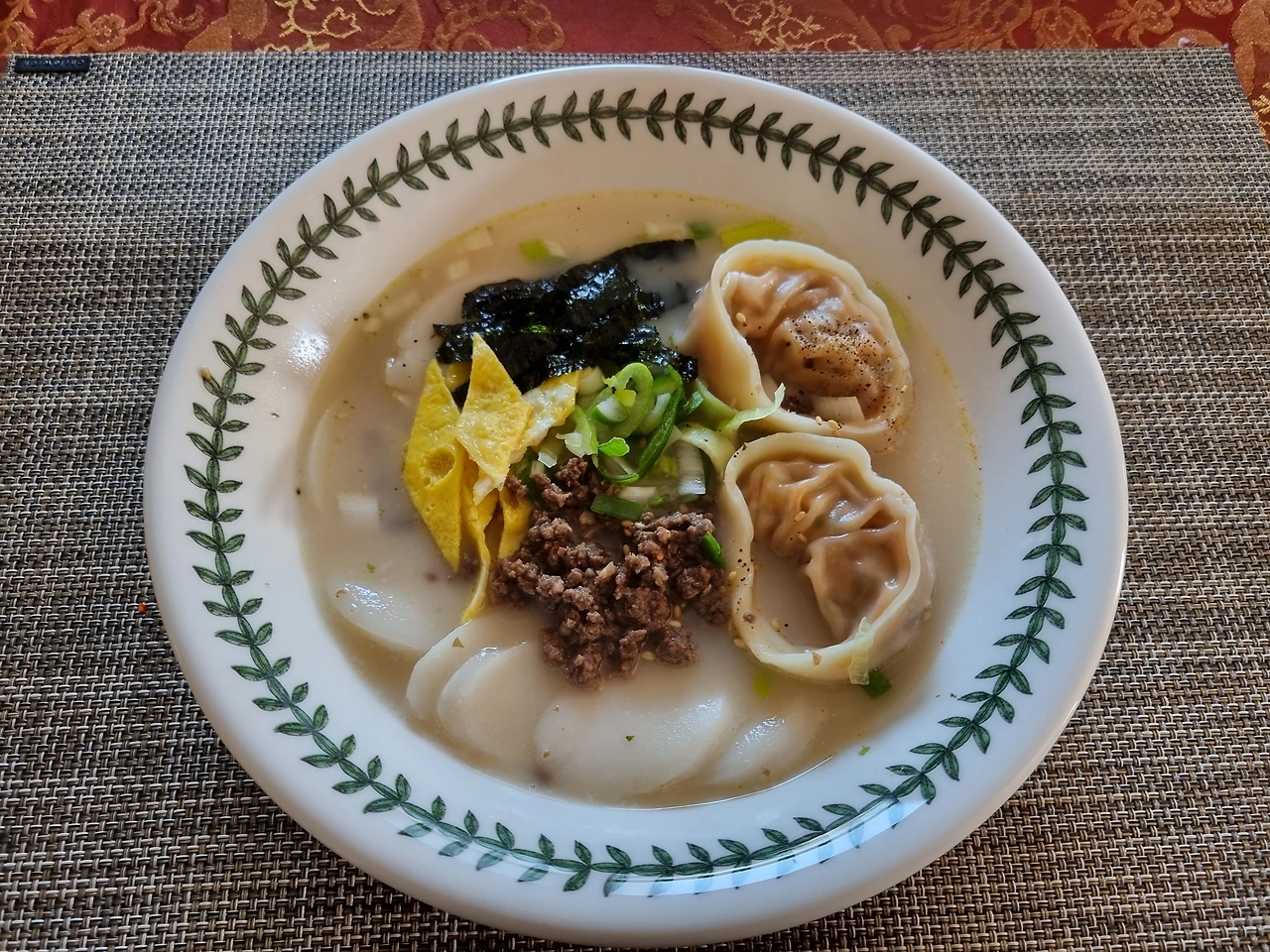 -끓는 사골 국물에 떡을 먹을 만큼 넣고 떠오를 때까지 끓이고, 한 개를 국자로 잘라봤을 때 쉽게 잘리면 잘 익은 거야.