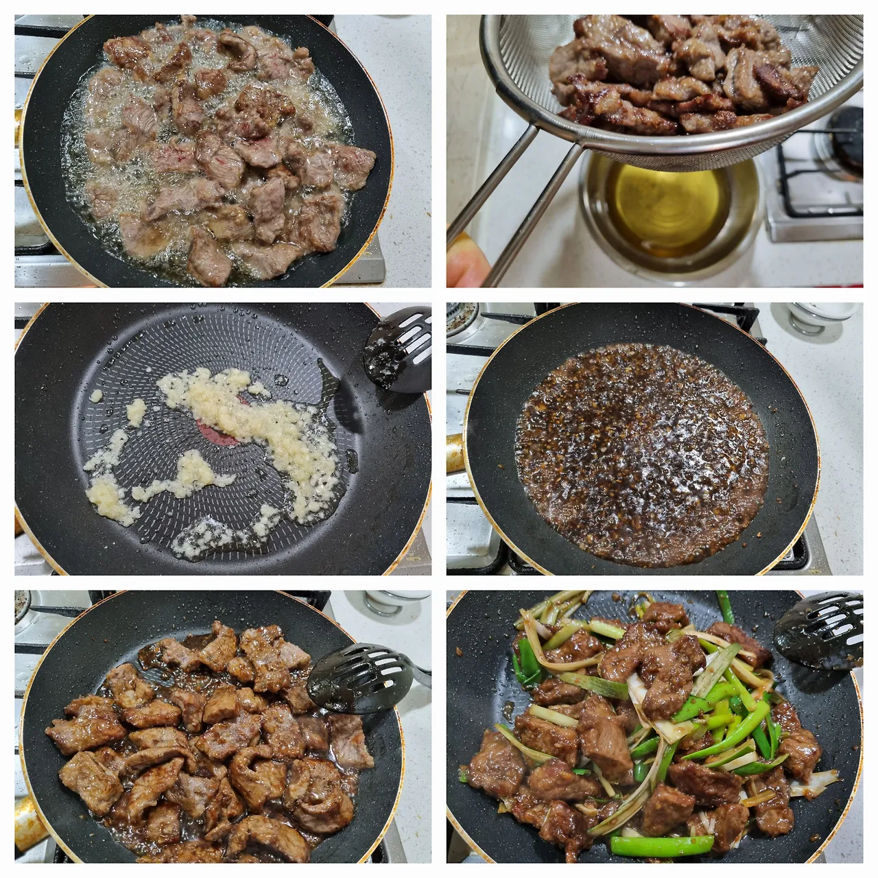엄마가 먹었던 요리 중에 제일 기억에 남는 게 '몽골리안 비프'여서 인터넷을 검색해 보니, 미국 퓨전 중식당에서 일했던 최형진 셰프의 레시피가 있어서 비슷하게 만들어 봤는데, 쉽고 아주 맛있었단다. 그동안 많이 했던 채소와 고기를 볶는 요리와의 가장 큰 차이점은, 고기를 계란 흰자와 전분으로 마리네이드 해서 튀기는 거였어. 이렇게 요리하면 고기가 코팅돼서 육즙이 빠지지않고 식감도 아주 특별해져. 베테랑 셰프가 가르쳐주지 않으면 몰랐을 방법이라서 인터넷의 위력과 혜택을 새삼 실감했네.