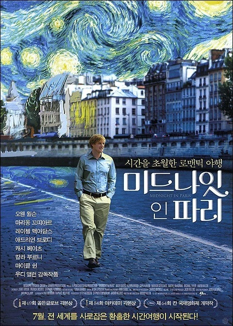 이 영화는 SF 식의 타임머신이 등장하는 시간여행 영화가 아니라, 과거의 인물들을 만나는 영화적 장치로 그 시대의 자동차나 마차를 등장시켜서 관객과 재미있게 과거로의 여행을 동행하게 해주는 영화이다. 실제로는 길이 한밤중 혼자 과거로 상상 여행을 했겠지만, 영화의 세계에서는 얼마든지 자동차나 마차를 타고 과거로 가서 좋아하던 예술가나 작가를 만날수 있다.