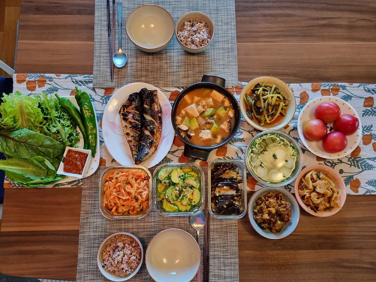 이렇게 차린 밥상에서 처음에는 밥과 반찬을 따로 먹고, 다음엔 상추에 밥과 나물을 얹고 쌈을 싸서 먹기도 하다가, 후반부쯤 나물과 열무김치와 된장찌개 속 두부를 많이 넣고 쓱쓱 비벼 먹는다. 식사를 다 한 뒤 보리차 한잔 마시고 자두 하나 깨물어 먹으면 속도 편하고 기분도 좋다. 그동안 기름진 고기와 느끼한 서양 음식에 질렸던 위장이 위로를 받는 느낌이다.