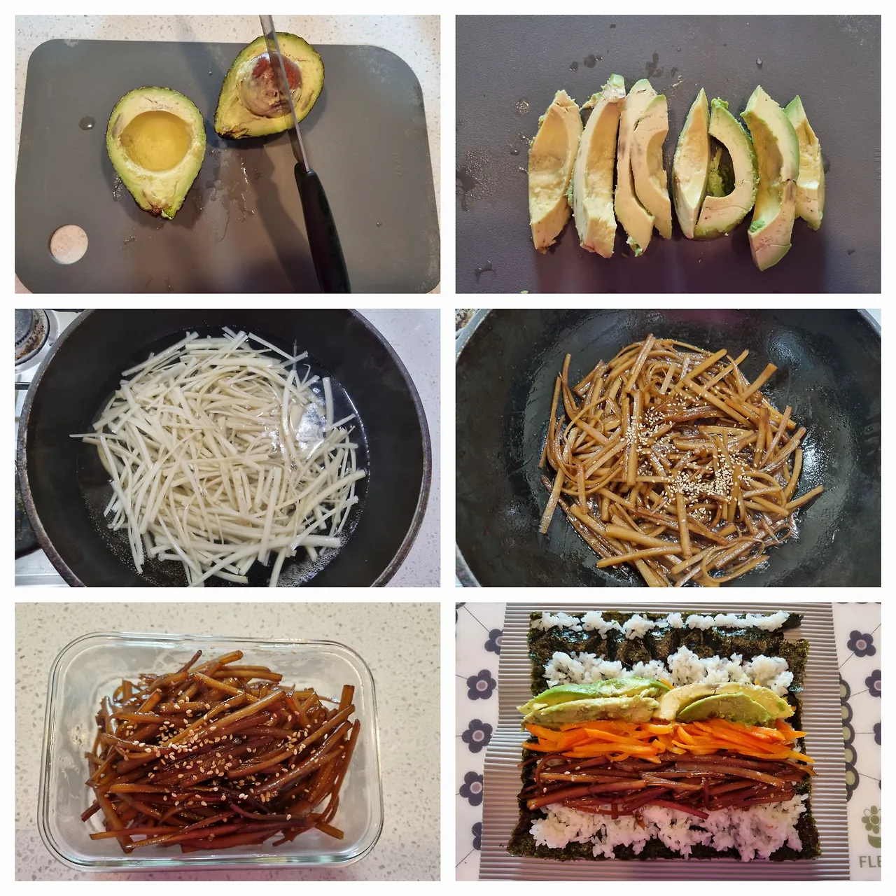 우선 단무지를 빼면 좋겠다. 그러나 상큼하고 아삭한 식감을 좋아한다면 무나 오이를 채 썰어서 소금, 설탕 식초에 절여서 키친타월로 물기를 제거해서 단무지 대신 쓰면 된단다.