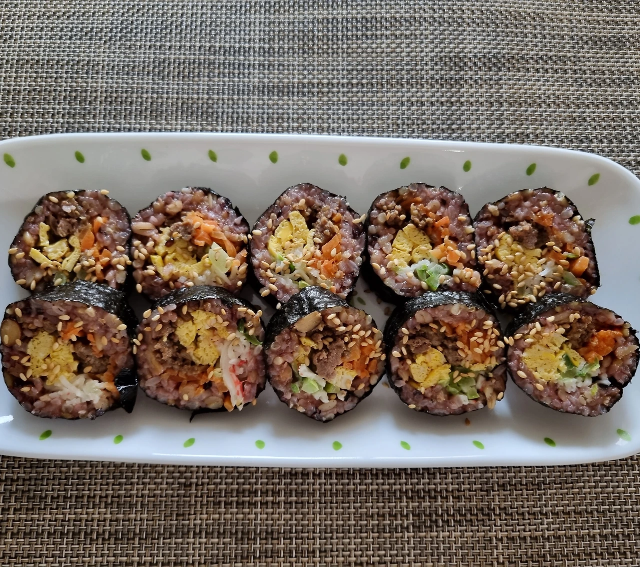 최근에 브런치 스토리의 '행복 나무'님이 쓰신 <김밥의 역습>이라는 글을 읽고 깨달은 바가 있었어. 우리가 흔히 빵이 아닌 밥이 들어간 음식을 건강식이라고 생각하기 쉽지만 음식점이나 슈퍼에서 파는 김밥의 재료를 살펴보았을 때 햄, 맛살, 어묵, 단무지를 보면 화학 보존료나 착색제, 조미료, 산화방지제 등이 많이 들어서 결코 건강한 재료가 아니라는 것을 알 수 있어. 물론 다른 식품에 비해 특별히 더 안 좋다고 볼 수는 없지만, 가끔 먹는 것이 아니라 너무 자주 먹으면 문제가 될 거라고 생각한다. 행복 나무님도 일하면서 아주 자주 김밥을 드셨고 꼭 그것 때문은 아닐지 모르지만 건강이 나빠졌다고 하시네. 그래서 그 작가님의 충고를 받아들이기로 했지. 적어도 집에서 만들 때는 맛을 좀 양보하더라도 좋은 재료로만 김밥을 만들겠다고 결심했단다.