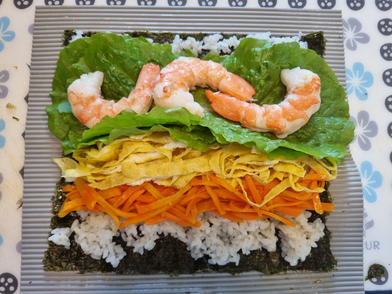 요리 초보때 김밥을 만들 엄두가 안 나는 것은 김밥 속 재료가 너무 다양해서야. 그렇게 만들면 일단 눈이 즐겁고 맛도 다양해서 좋을 수 있지만, 재료가 다 갖춰지지 않았을 때 만들기를 포기하게 되지. 또 아까 말한 대로 은근히 화학 물질이 많이 들어간 가공 식품을 많이 넣게 되는 단점이 있어. 그러니 단백질 재료 포함해서 '기본 세 가지'좋은 재료만 있으면 김밥을 만들 수 있다는 생각을 가지도록 해라. 가짓수는 적은 대신 양을 넉넉히 넣으면 맛도 모양도 훌륭하단다.