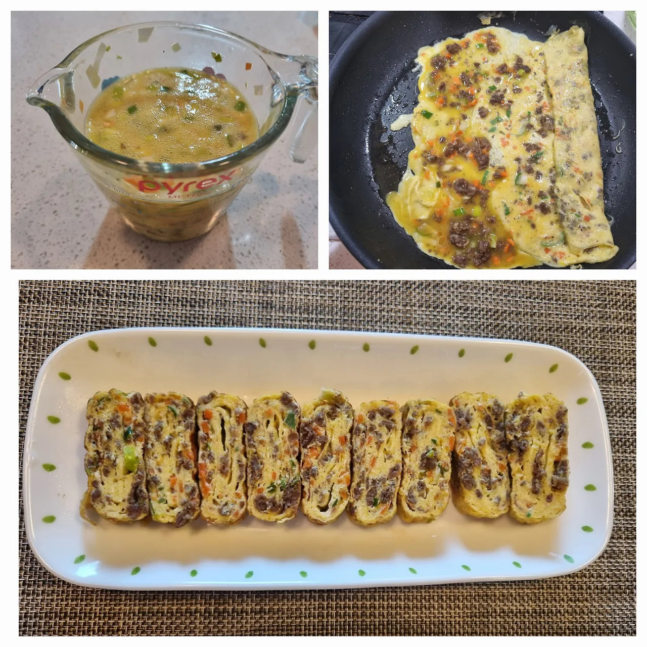 -팬을 달구고 기름을 넣은후 중약불로 맞추고 계란물을 넣고 한쪽에서부터 만다.