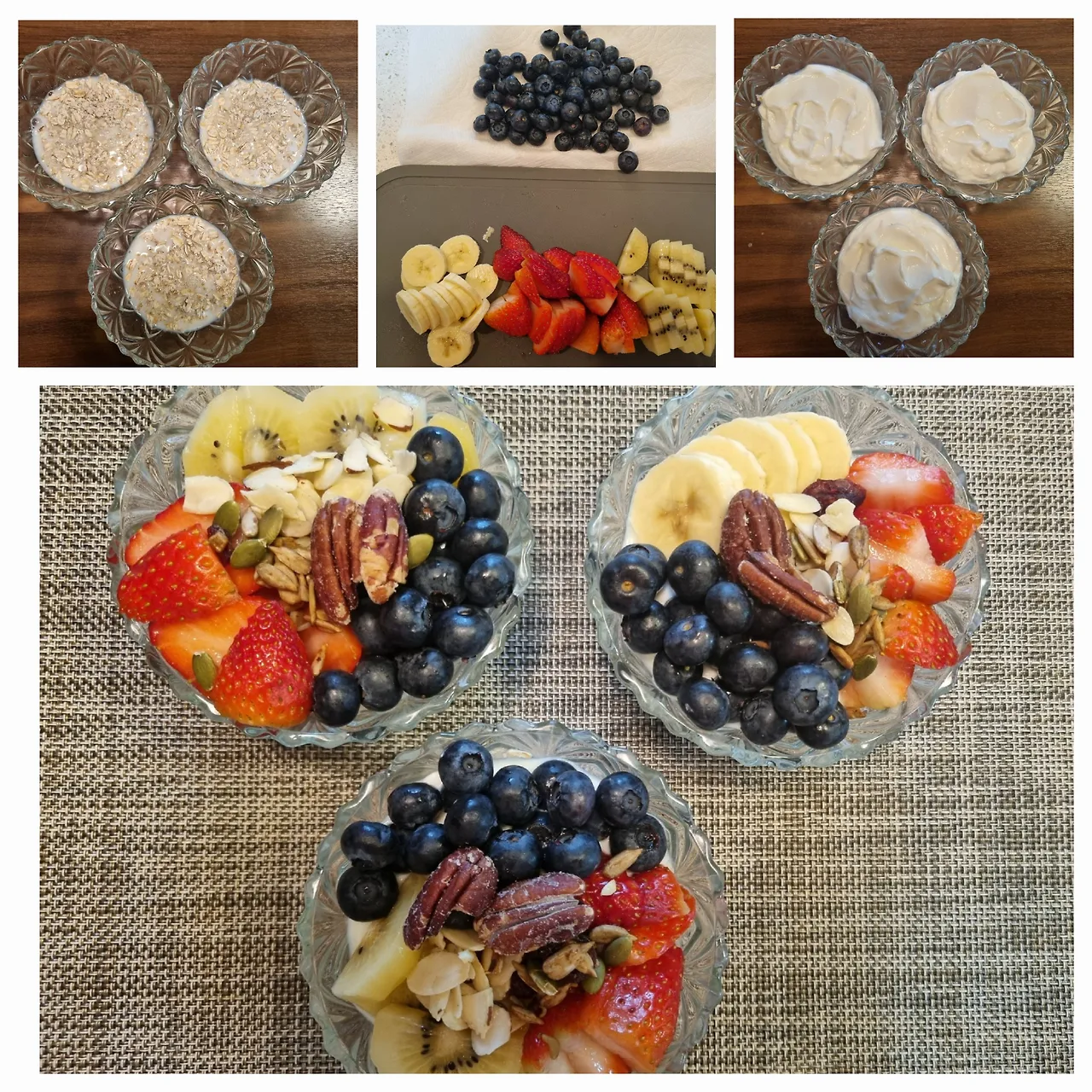 -냉장고에 넣고 하룻밤 재워서 오트밀이 부드럽게 되도록 불린다.