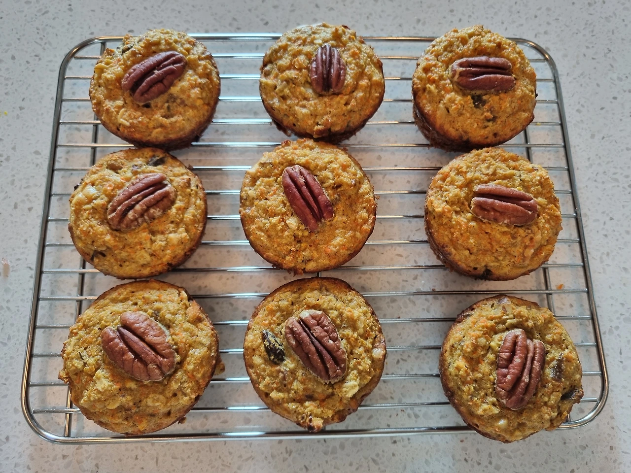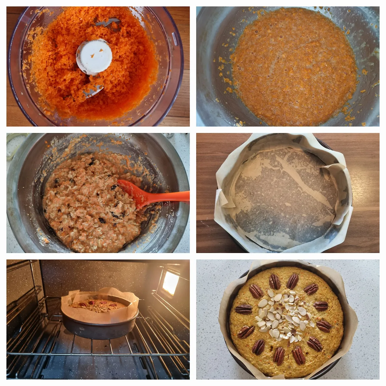 -식용유 50ml, 스테비아 2큰술(흑설탕이나 설탕 2큰술로 대치 가능), 다진 당근, 소금 반 큰술, 바닐라 에센스 1작은술, 그릭 요거트 150g(대신 뭉갠 바나나 2개를 넣어도 되고, 둘다 넣어도 괜찮아)를 계란물에 넣고 섞는다.
