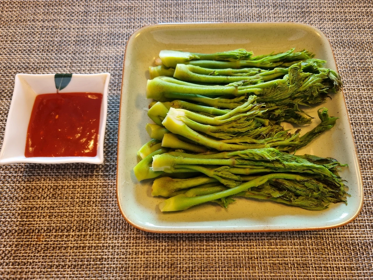 요즘 먹을 수 있는 훌륭한 채소는 두릅이야. 두릅도 씹는 식감과 향이 일품이지. 좋고 비싼 채소는 양념을 줄이고 제맛으로 먹어야 해서 주로 살짝 데쳐서 먹게 되는데, 대부분 초고추장을 찍어 먹지만 초고추장을 자극적이지 않게 만들어야 본연의 맛을 해치지 않는단다.(너무 달거나 조미료를 많이 넣은 시판 고추장이 많아)