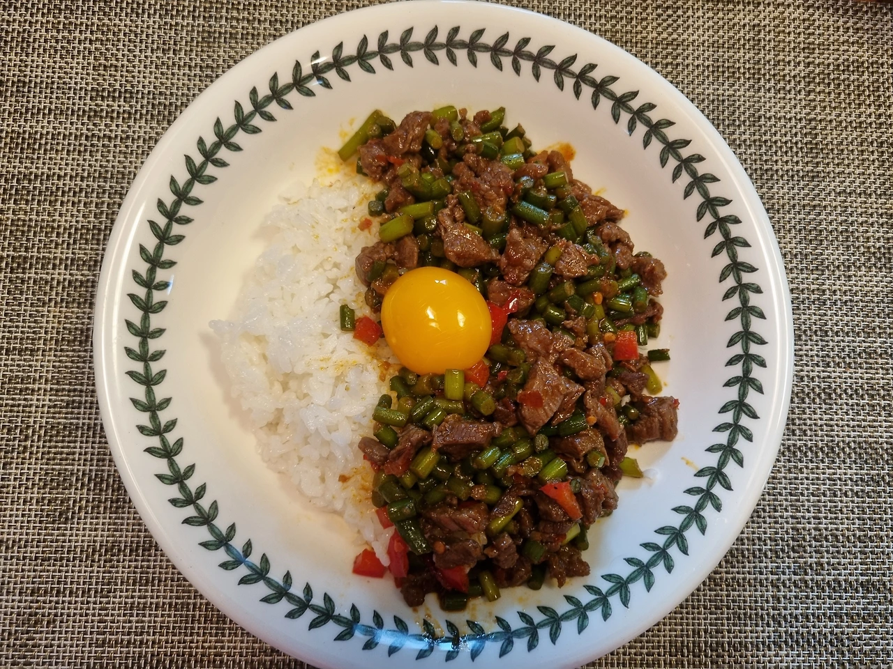 <소고기 마늘종 덮밥>