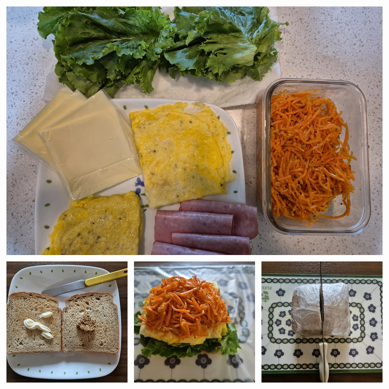 오늘은 당근 라페를 만들어서 그것으로 샌드위치와 김밥을 만들어 보려고 해.