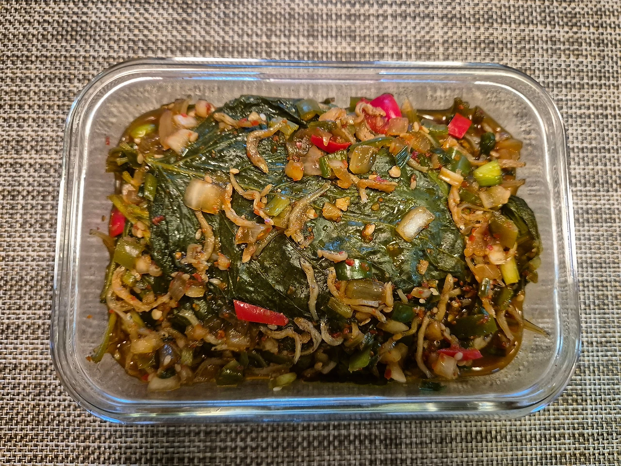 또 하나는 여름철 많이 나오는 깻잎 요리인데 보통 시중에서 파는 깻잎 요리는 너무 짜서 많이 먹을 수가 없더라. 엄마는 심심하게 간을 하고 잔멸치를 넣어서 영양적인 균형도 맞추어 만들었으니 서너장씩 먹어도 짜지 않을 거다. 붙어있는 깻잎을 떼는 것을 도와주는 일에 대한 논쟁이 많더라. 너희는 아내나 여자친구 앞에서 남의 깻잎을 떼어주지 말도록 해라. 하하.