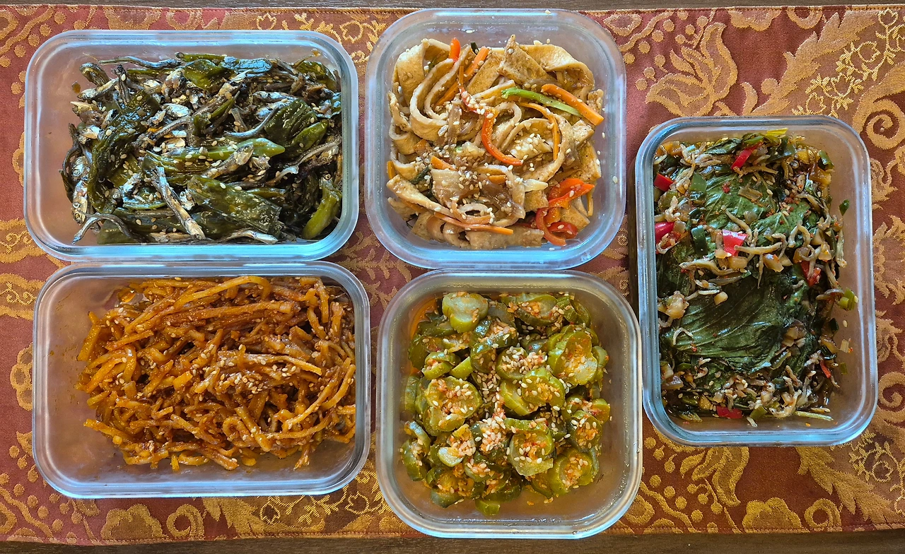 그러나 뭐니 뭐니 해도 한국 여름에 많이 나는 제철 재료로 만든 밑반찬이 밥에는 잘 어울리고 쉽게 외국에서 먹을 수 없을 것 같아서 네가 오기 직전에 부지런히 만들어 보았다.