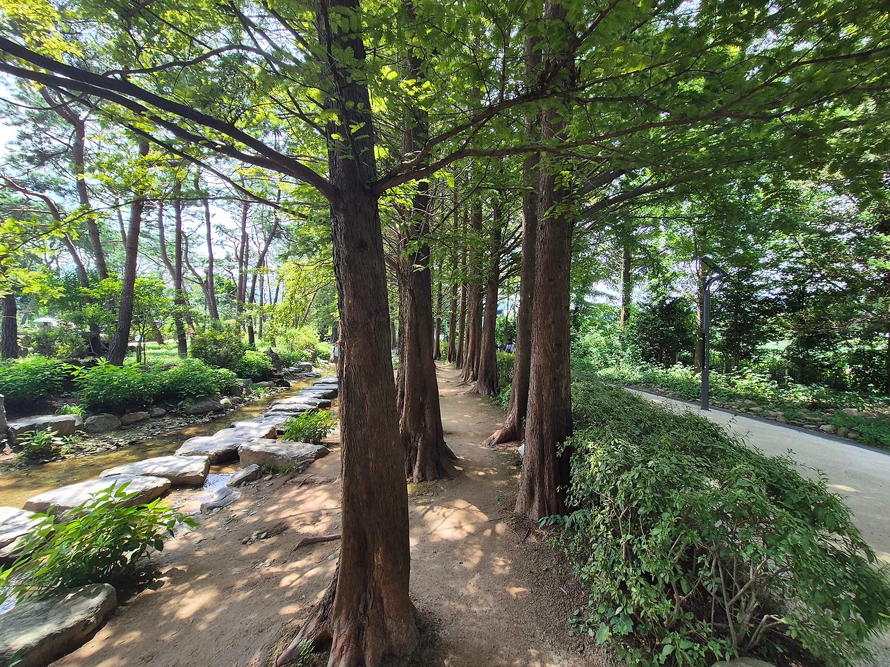 나는 여러 번 갔으니 어떤 때는 징검다리를 건너서 갔고, 이번에는 나무 사이에 난 오솔길을 선택했다. 돌아올 때는 일부러 넓은 길로 걸어서 나왔다.