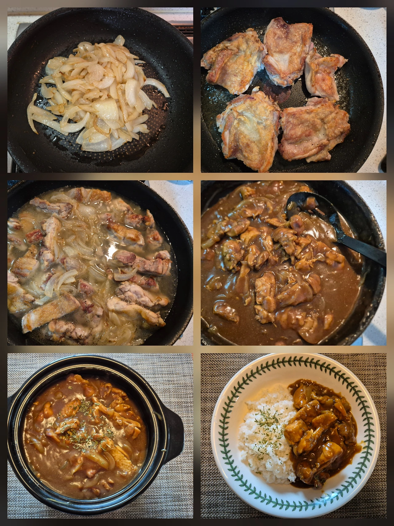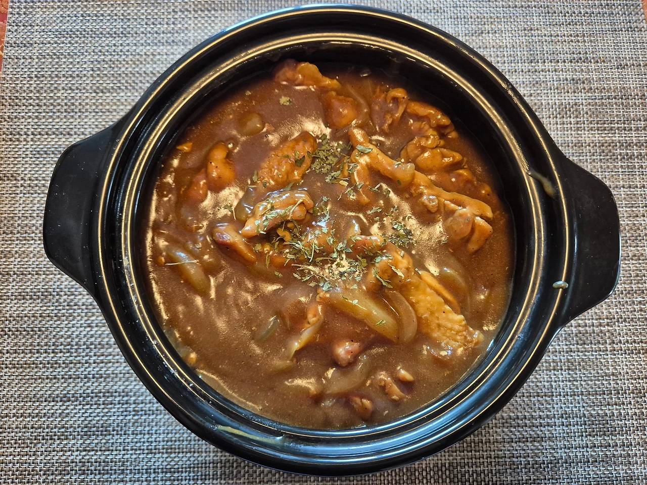가장 중요한 팁은 넉넉한 양의 양파를 중 약불에서 갈색이 나도록 충분히 공을 들여 볶아야 한다는 것이야. 잘 볶아진 양파는 은은한 단맛과 풍미를 주어서 음식의 맛을 한층 끌어올린단다. 평소에 먹던 카레보다 고기 함량이 많아서 닭요리로 안주처럼 먹어도 맛있단다.