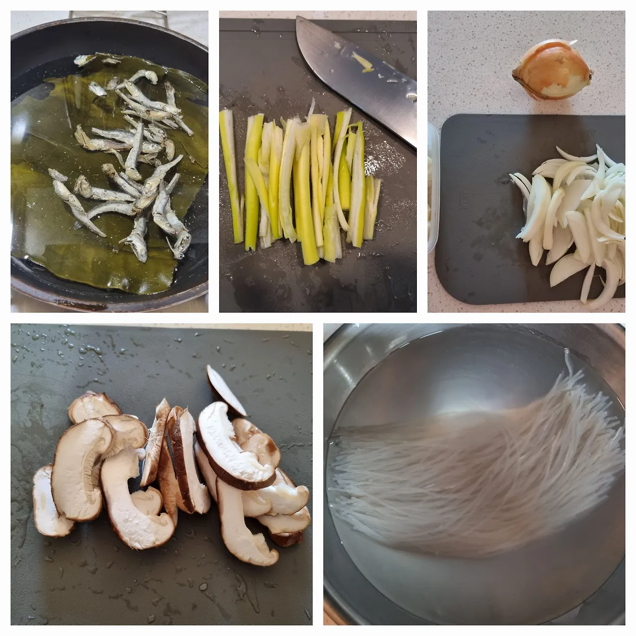 -멸치와 다시마를 넣고 육수를 끓여.(시판 국물용 다시팩이나 국물 코인을 넣고 해도 된다.)