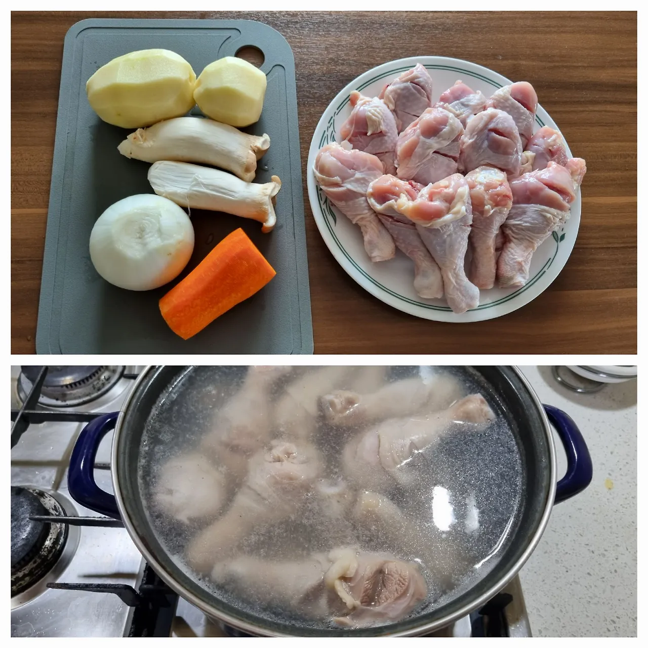 *번거롭다면 닭다리를 데치지 않아도 되지만 익히는 시간을 늘려야 하고 기름기가 많은 요리가 될 거다.(엄마는 핏물과 과도한 지방을 제거하려고 데치지만, 그냥 요리한 게 더 맛있다는 사람들도 있어.)
