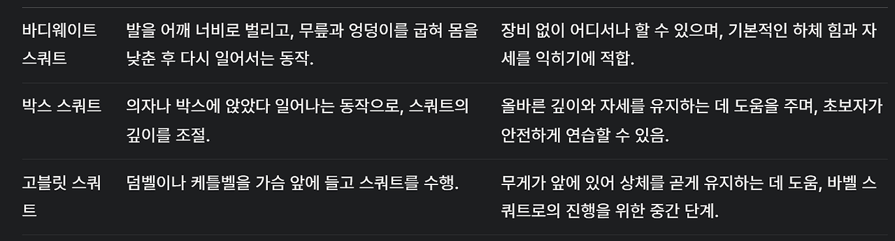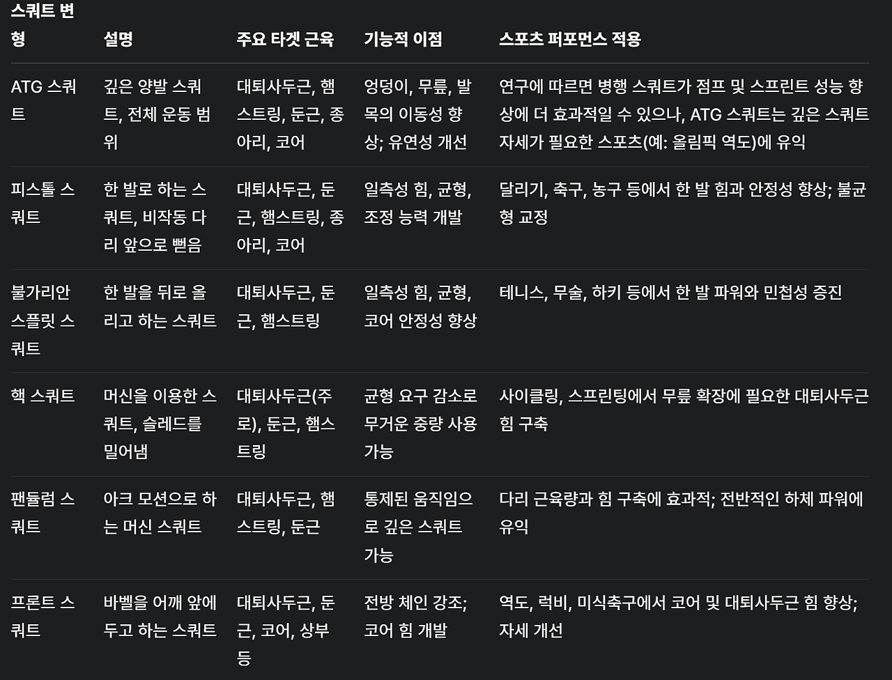 어떤 종류의 스쿼트를 해야 하는지는 다음과 같이 정리했다.