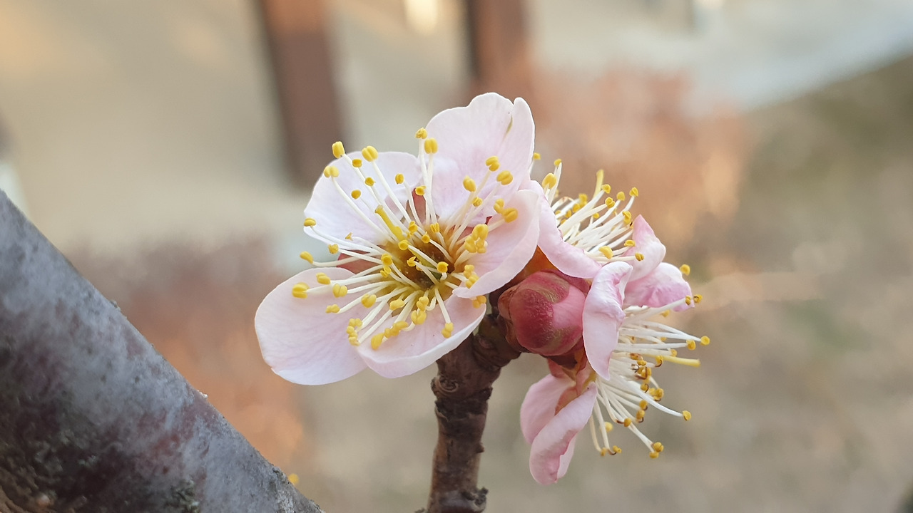 아래 사진: 연분홍의 홍매(紅梅). 매화를 사랑하는 사람들이 자세하게 구분을 잘했다고 생각한다.