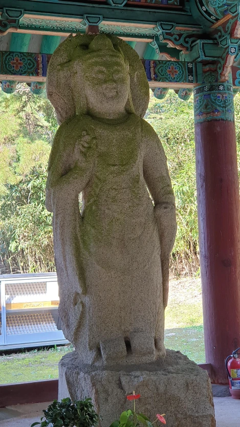 *처음에는 어떤 보살상인지 알 수 없었다. 자세히 보니 왼손에 정병을 들었고, 오른손은 버들가지나 연꽃 가지를 들은 것은 것으로 짐작한다.(관세음보살은 정병과 버들가지나 연꽃이 핀 줄기를 지물로 든다.)