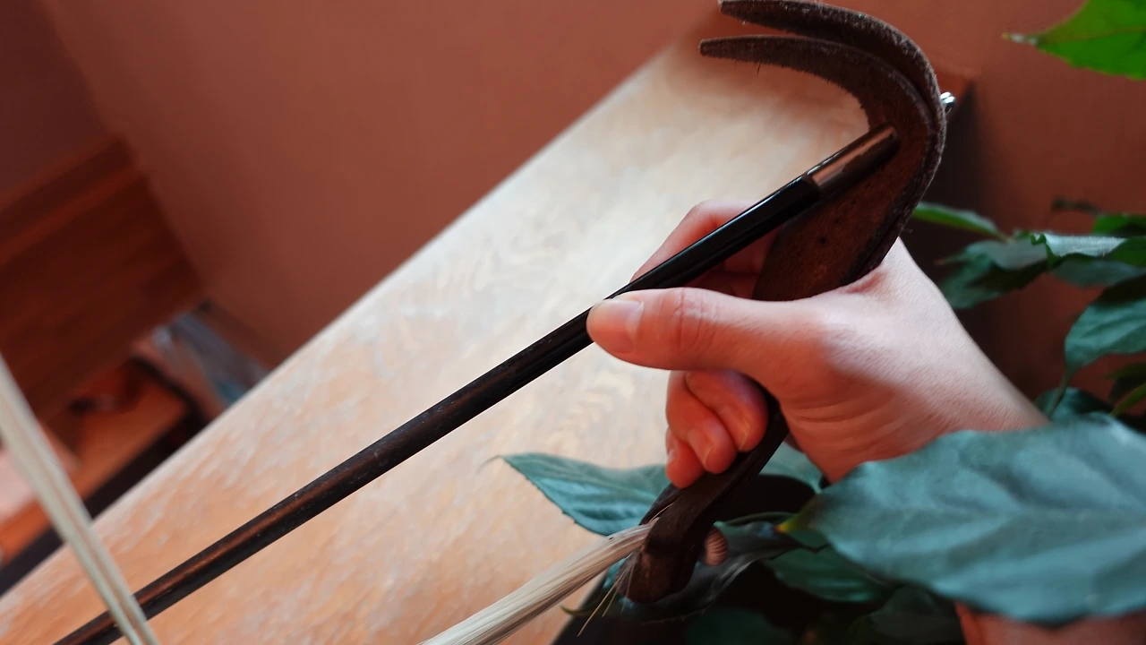 가죽손잡이를 오래 사용하다보면 너덜너덜해진다. 가죽에 손가락이 닿는 부분은 꾹꾹 눌려있고, 땀에 절어 시커멓게 태닝 된다. 수명을 다해 송진을 먹여도 금새 반딱반딱한 낡은 빛을 내며 소리를 고이 내주지 않는 말총과 더불어 망가진 가죽 또한 폐기처분 된다. 새 말총과 새 가죽을 받아들이고 다시 내 몸의 일부처럼 길들인다. 어느 생명체와 마찬가지로 생성과 소멸을 반복한다.