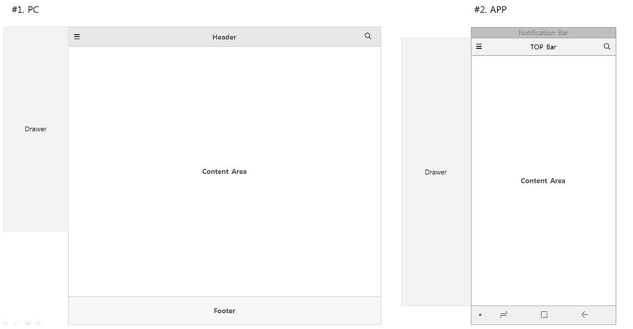 상단은 메뉴(햄버거 메뉴 버튼), 로고(홈), 글쓰기, 검색 기능 배열로 구성되어 있다. 글을 찾거나, 쓰는 기능 외의 공지확인, 피드 확인, 이벤트 확인 등의 부가적인 기능은 모두 드로어(drawer)를 열어 이용하도록 배치했다. 이런 구성은 브런치 서비스 유저들의 사용성 분석을 통해 만들어진 UI인 것이다. 메인에 노출된 글을 보게 하려는 목적이 엿보인다.