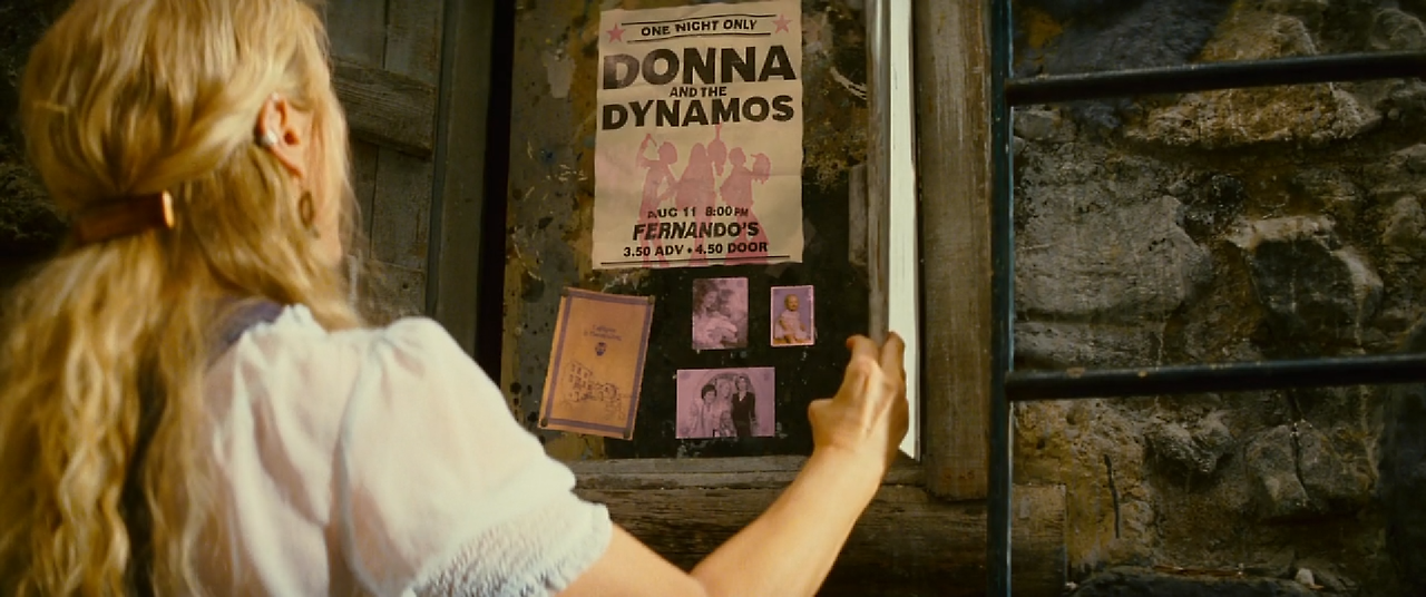 타냐와 로지와 함께 번화가 음식점에 방문한 도나는 이전에 방문했던 때와 달리 기운이 축처져 있다. 타냐와 로지가 권하여 도나는 영화의 타이틀 곡인 mamma mia!를 부르며 힘을 얻는다. 1편에서 메릴 스트립/줄리월터스/크리스틴 바란스키가 보여주는 '도나와 다이나모'의 공연처럼, 릴리제임스/알렉사 데이비스/제시카 키나 윈이 보여주는 '도나와 다이나모' 공연도 유쾌했다. 특히, 화려한 의상과 퍼포먼스는 일품이었다.