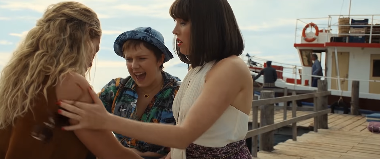맘마미아에서는 선착장은 이별의 상징이자, 새로운 만남의 장소이다. 전작에서는 세 아빠가 만나게 되는 장소였고, 본편에서는 젊은 빌(조쉬 딜란 님)과 만나게 된다.
