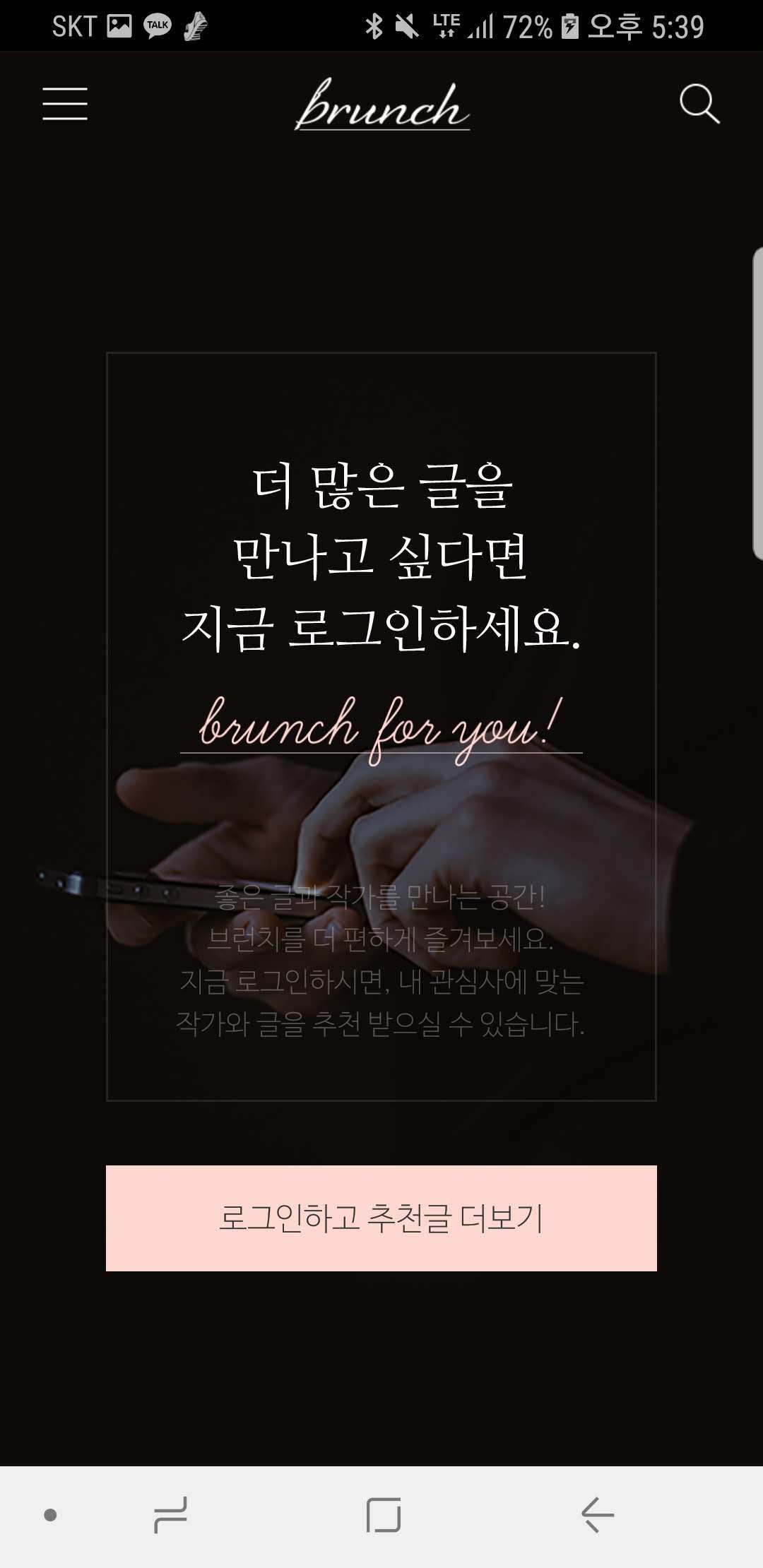 브런치 서비스가 런칭된 지 벌써 3년이 되었다. 초창기 브런치 오픈 소식에 사람들의 반응은 '있는 서비스나 잘하지', '잘 만들었는데 블로그와 뭐가 달라', '내가 쓴 글이 어떻게 추천될까', '작가 선정 기준이 도대체 뭐야' 등 부정적인 측면과 호기심을 갖고 접했다. 카카오 채널, 다음 메인 페이지에 인기글은 함께 걸리면서 브런치에서 잘 만들어진 글들은 다음 카카오의 콘텐츠 자료로 쌓여가고 있다. 네이버가 뺏어간 플랫폼 영향력을 되찾는데 필요한 재료를 수급하는 역할을 맡았다고 해도 과언이 아니다. 그럼 우리가 즐겨찾는 브런치 서비스에 대해 조금씩 배워나가 보도록 하겠다.