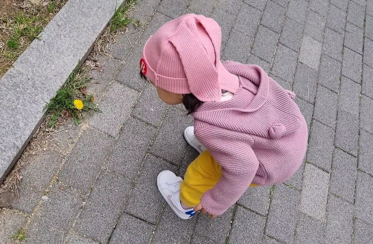 2살도 안된 아이가 보기에도 노란 꽃이 이쁜가 보다.