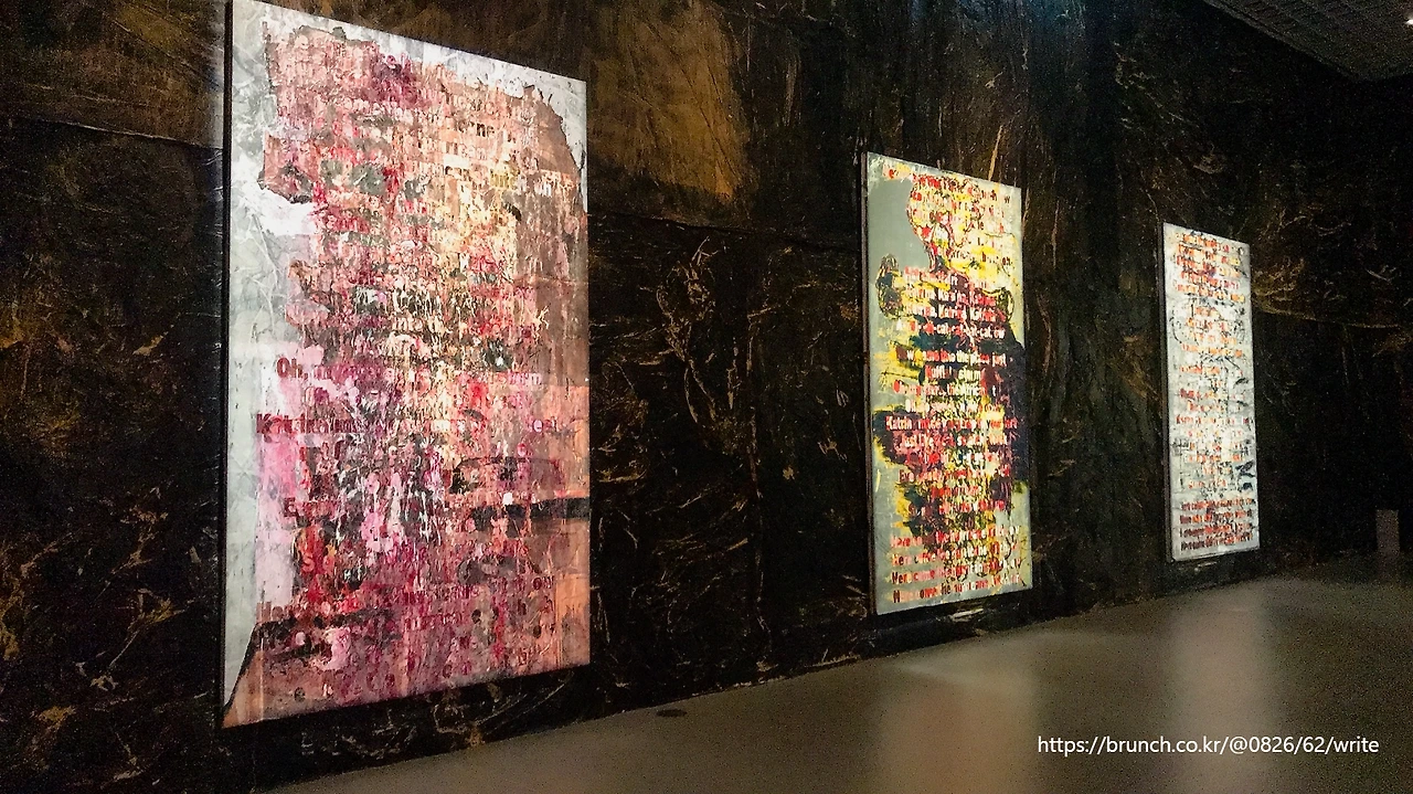 아모레퍼시픽미술관에 미국작가 마크 브래드포드(1961~)의 개인전 <Mark Bradford: Keep Walking>을 보러 갔다. 2017년 베니스 비엔날레의 미국관에서 본 대형 회화를 생각하며 들어간 전시장은 그게 전부가 아라며 작가의 세계관 속으로 나를 쓱 끌어들였다.