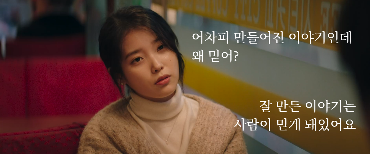 "그러니까, 지어낸 이야긴 거잖아요. 당신 시점에선 사실이어도 읽는 사람 관점에선 '설마?'가 생길 수도 있는 거고. 어떤 측면에선 의심도 할 수 있는 거잖아요? 그러니까 내 말은 읽는 사람에 따라 어떻게 보일지에 대한 고민도 필요하지 않냐는 거예요"